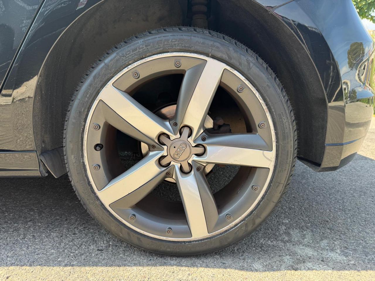 - Jantes en aluminium coulé Audi Sport style 5 branches en V finition titane mat, polies brillant 7,5 J x 18 avec pneus 225/35 R 18